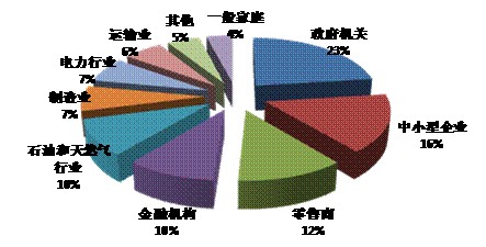 在俄羅斯,安防產(chǎn)品的主要消費者是政府機關(guān)、銀行、國防企業(yè)、石油天然氣行業(yè)、電力行業(yè)、通信業(yè)以及其他行業(yè)。石油天然氣行業(yè)、政府機關(guān)和電力行業(yè)仍然是安防設(shè)備的首要使用者。