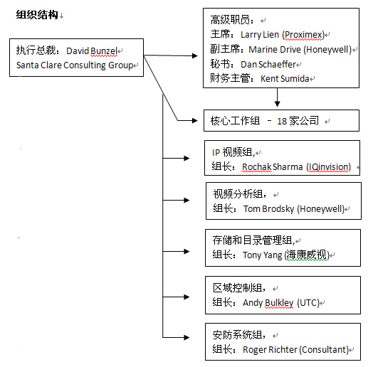 PSIA聯(lián)盟主要為會員單位提供不需要任何許可授權(quán)的標(biāo)準(zhǔn)和規(guī)范,并對整個行業(yè)秉承“開放、合作”的原則。目前,為五個工作組提供了統(tǒng)一的標(biāo)準(zhǔn)和規(guī)范,包括IP視頻組、視頻分析組、存儲和目錄管理組、地域控制組和安防系統(tǒng)組。
